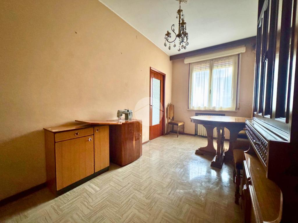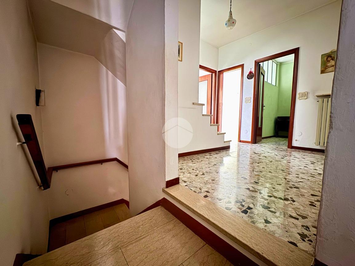 Una volta varcato l'unico ingresso della corte, condiviso con altre 5 abitazioni, troviamo l'entrata del nostro immobile, composto da: corridoio, cucina abitabile con accesso alla cantina, soggiorno, ampio ripostiglio e scala per il piano superiore.